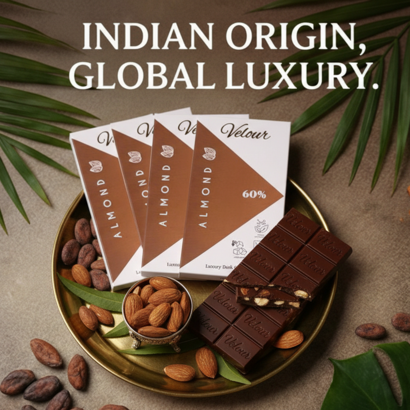 Silky vegan dark chocolate studded with premium roasted almonds—perfect balance of crunch, rich nutty flavor, and smooth 60% cacao intensity. Crafted bean‑to‑bar in India, stone‑ground for ultra‑smooth texture, with clean ingredients and no artificial additives. A timeless, gift‑worthy bar that’s equally great for everyday indulgence or upscale gifting.