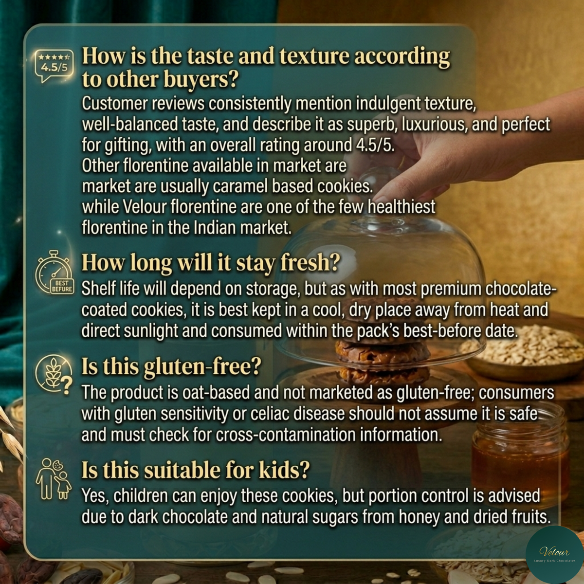 Satisfying, Fiber-Rich Crunch Oat-based, maida-free lace texture.